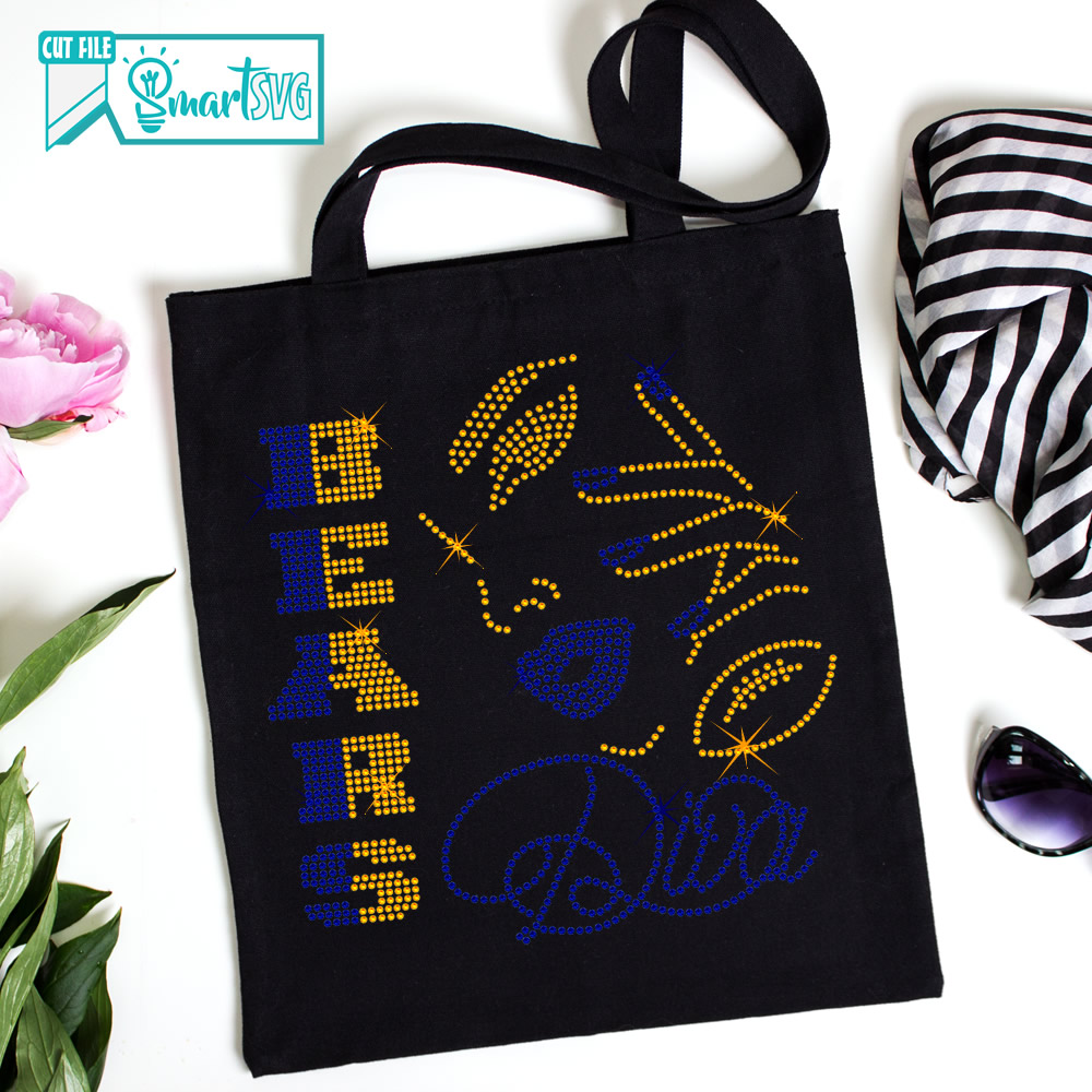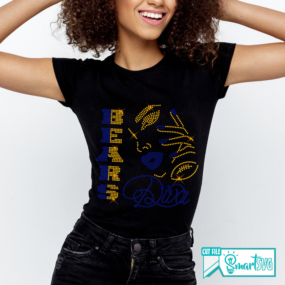 Bears Diva Rhinestone, football rhinestone svg, Bears woman svg, Bears girls svg, Bears football svg, fans football, rhinestone fan svg
